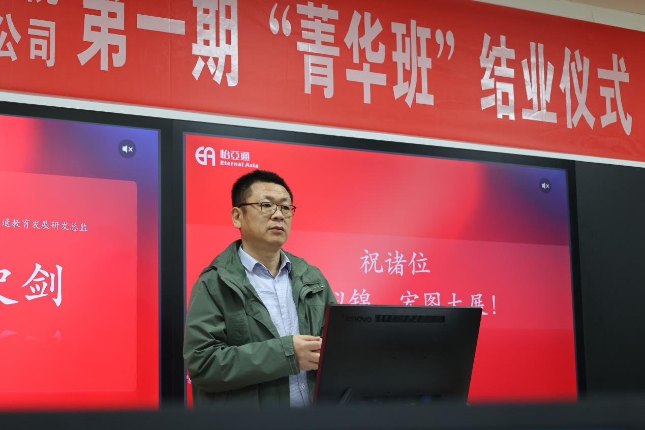 怡亚通教育事业部研发总监史剑通过远程视频对“菁华班”的同学们表示了高度赞扬:“你们在两个月的学习中掌握了供应链基础,树立了供应链思维。希望你们能够将所学知识联系实际,应用到实际工作中。”