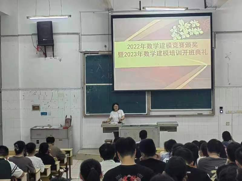 2023年5月18日19时, 2022年数学建模竞赛颁奖暨2023年数学建模培训开班典礼在教学楼617顺利举行。基础教育学院数学教研室主任赖婷婷以及全体数学教师、2022年数学建模竞赛获奖的参赛队员和报名参加2023年数学建模培训的学生共一百多人参加了本次典礼。典礼由赖婷婷主持。