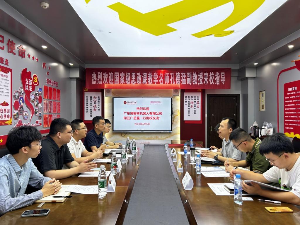 6月5日上午,广东博智林机器人有限公司产教融合组副组长兼总监何云广一行5人来访beat365,就产教融合、校企合作相关事项开展交流。城乡建设学院副院长吕亨龙、副院长张乐、校办副主任莫璇以及专业教师杜波等参加交流。