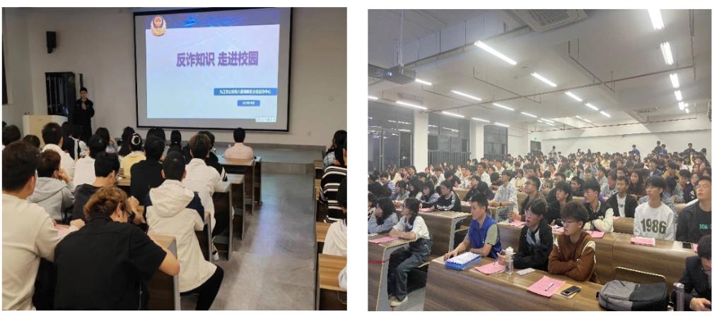 讲座中,陈警官围绕“什么是新型电信网络诈骗”、“最新颖的电信网络诈骗手段”、 “新型电信网络诈骗的危害”、“如何防范电信网络诈骗”等方面进行讲解,结合校园发生的真实案例,深刻剖析了电信网络诈骗的全过程和受害人的心理活动,揭露了诈骗背后的套路和伎俩,为师生敲响了警钟。此外,陈警官还详细讲解了“两卡”犯罪中嫌疑人是如何通过手机卡、银行卡等工具,引诱他人从事洗钱的违法犯罪活动,让师生们深刻认识到“两卡”犯罪的危害性。使学生加深记忆,达到人人识骗的宣传效果。