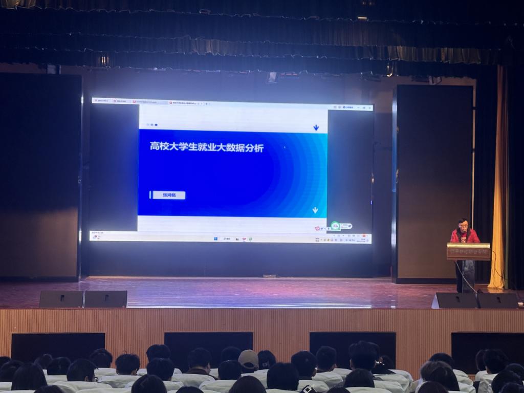 在就业指导讲座中,张鸿铭从就业市场的大数据着手,分析了大学生在就业过程中面临的问题以及造成大学生就业难的原因,接着他从简历制作、面试技巧等方面做了详细讲解,提出了很多宝贵意见。
