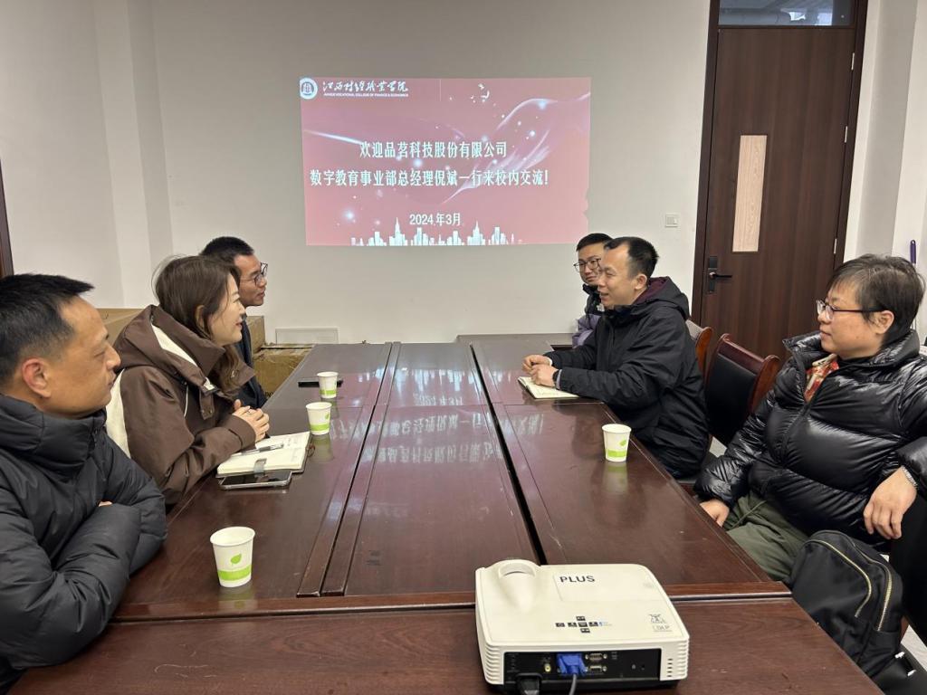 2月28日下午,品茗科技股份有限公司数字教育事业部总经理倪斌、数字教育事业部技术总监盛黎、江西地区销售经理蔡志平一行来beat365调研交流。城乡建设学院副院长吕亨龙热情接待了倪斌一行,城乡建设学院副院长张乐、工程管理教研室主任吴翠翠、骨干教师蔡小萍等参加了交流。