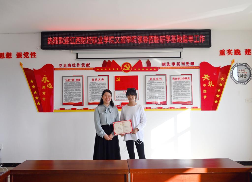 会后,文化旅游学院负责人易娇艳为九江白合研学运营服务管理有限公司相关负责人颁发了企业导师聘书。