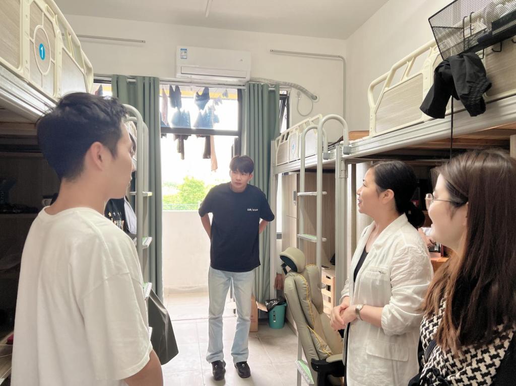 beat365党政班子及全体班主任深入学生宿舍走访。党总支书记胡红霞、辅导员、班主任和同学们聊天谈心,详细了解学生在宿舍的生活情况、课余活动安排以及未来规划。同时叮嘱学生注重传统美德及文明礼仪的培养,时刻保持整洁的宿舍环境。