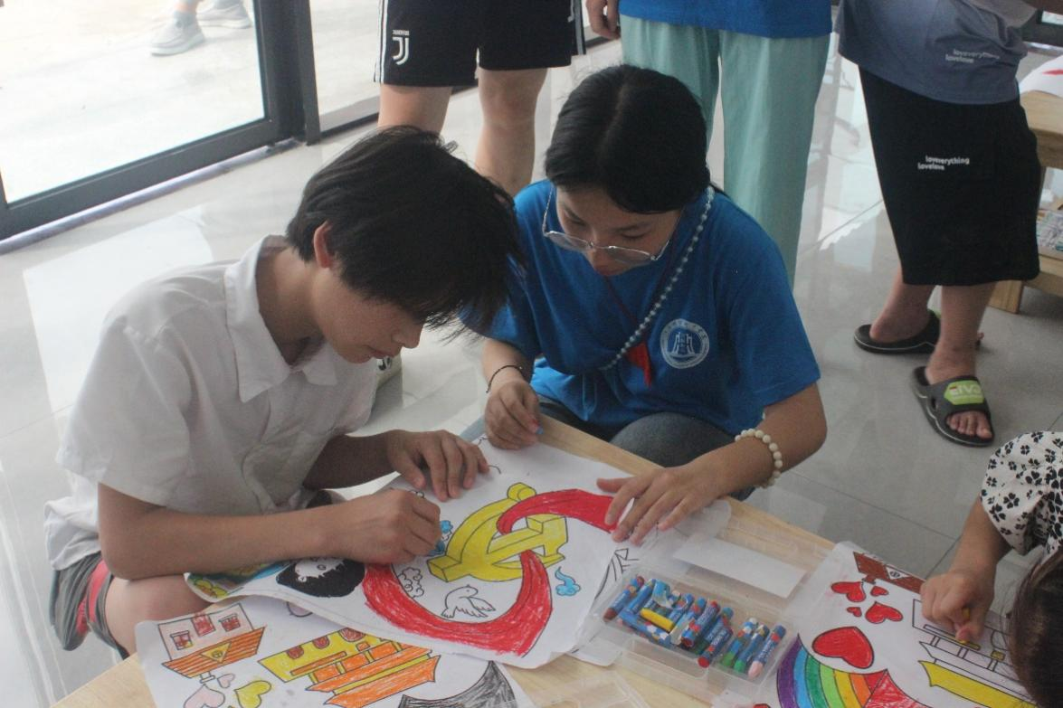 “历史是最好的教科书,也是最好的清醒剂。要了解党和国家事业的来龙去脉,吸取党和国家的历史经验,正确了解党和国家历史上的重大事件和重要人物。这对正确认识党情、国情十分必要,对开创未来也十分必要。因此,实践队在当地村委会开展了童心妙笔,描绘“四史”的活动,通过向村民和当地留守儿童介绍中国共产党史、新中国史、改革开放史、社会主义发展史的有关知识。并带领当地留守儿童一起完成手绘南湖红船、井冈山斗争、红色中国国旗、党徽等体现红色元素的简笔画。通过学习“四史”,不仅使当地留守儿童深入了解党的历史和优良传统和各时期中国共产党带领全国各族人民取得的伟大成就,更是一堂具有实践意义的“思政课”,也鼓励了实践队成员和小朋友们学习先辈坚韧不拔、为国奋斗的伟大精神。