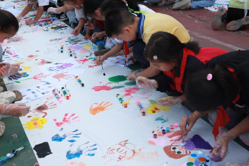 活动现场,“百米”长卷缓缓展开,仿佛一条连接赣黔的纽带,等待着孩子们用色彩去填充、去讲述两地的故事。在实践队队员的引导下,孩子们纷纷拿起画笔,开始在画卷上描绘自己心中的梦想与愿景。