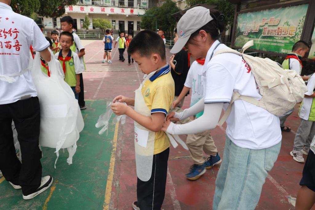 孩子们或蹲或站,全神贯注地在画布上勾勒、上色,他们的笔触虽显稚嫩,但每一笔都充满了对家乡的热爱和对未来的憧憬。在实践队老师的悉心指导下,孩子们不仅学会了如何将心中的想法化作画面,更在创作中体会到了赣黔两地文化的独特魅力与深厚底蕴。