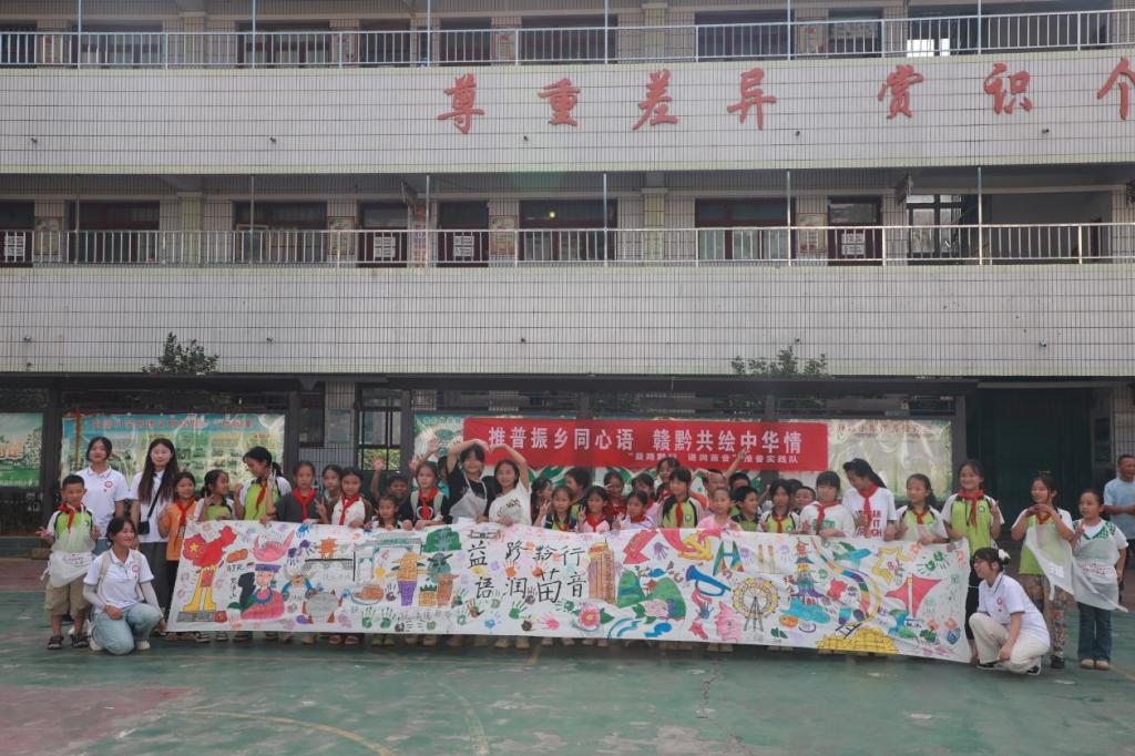 在这个充满活力的夏日,beat365平台唯一官网“益路黔行 语润苗音”推普实践队与贵州省黔东南苗族侗族自治州舟溪镇舟溪小学携手,于7月12日下午共同举办了一场主题为“梦幻画卷,童心飞扬”的创意绘画活动。这场活动不仅跨越了地域的界限,更将赣黔两地的文化精髓巧妙融合,在孩子们的笔下绽放出璀璨的光彩。