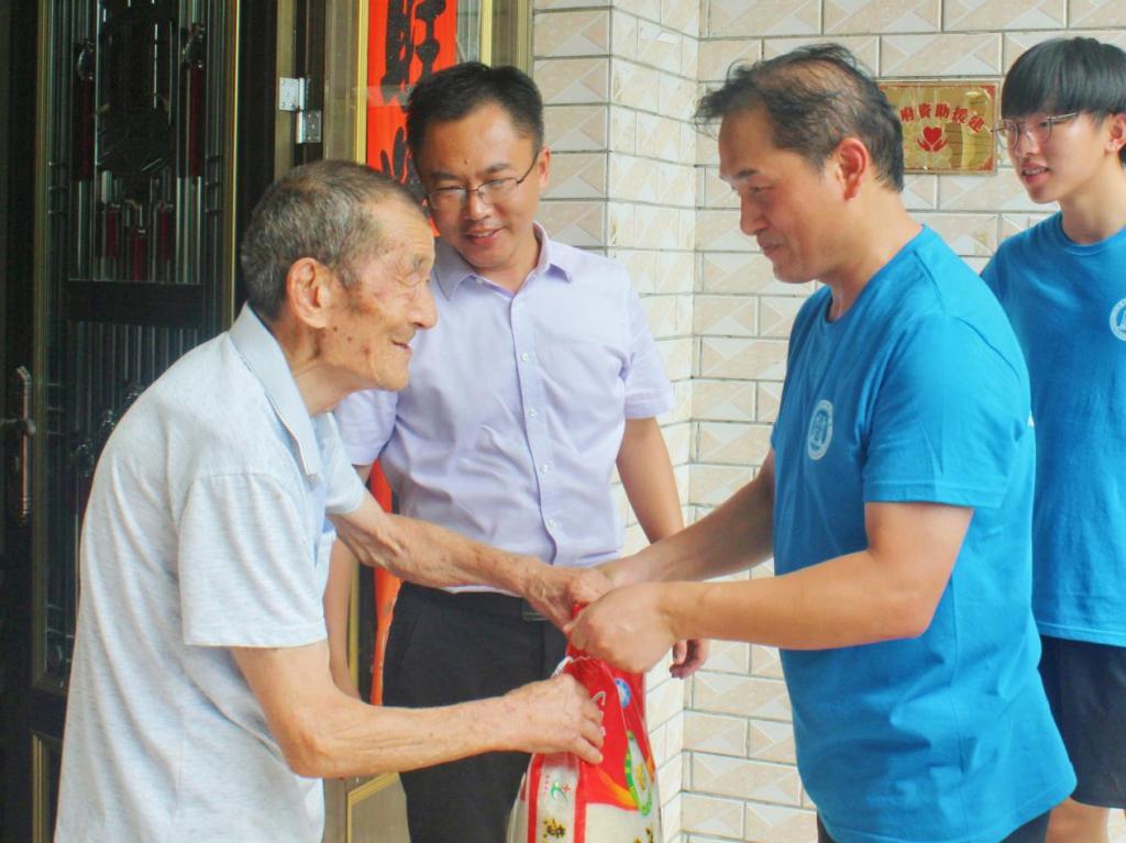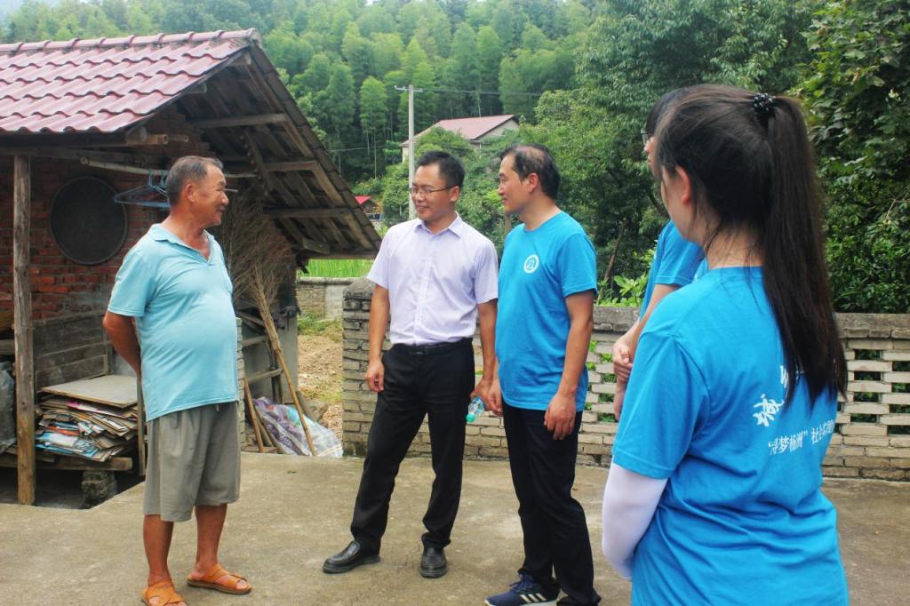 图为:“浔梦杨洲”社会实践队与驻村干部慰问老人。
