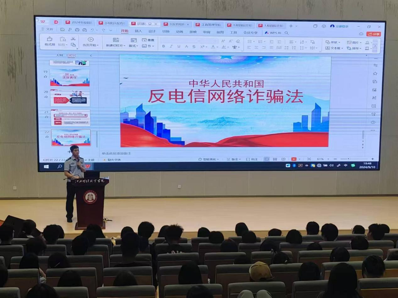 工商管理学院通过组织开展“开学第一课”反诈讲座,进一步提升了学院师生的识诈、防诈、反诈意识和能力,进一步织密了校园反诈安全“防护网”,进一步推动了和谐平安校园的全面建设,营造了全民反诈、校园反诈的浓厚氛围。