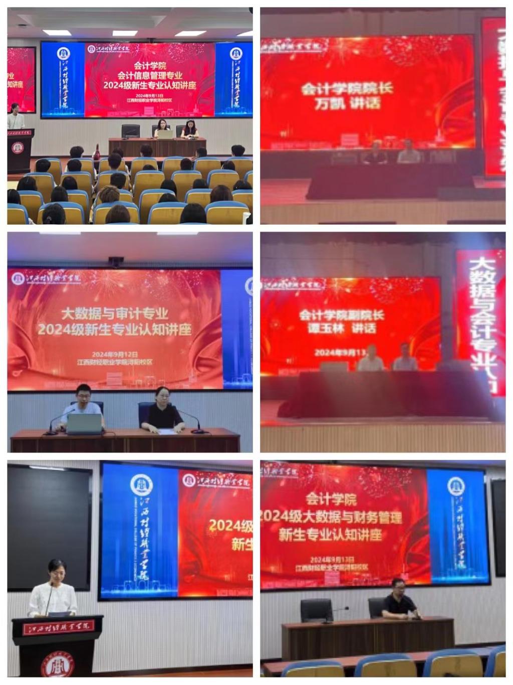 为了让会计学院2024级新生了解所学专业,快速适应大学生活。2024年9月11日—9月13日,会计学院分专业、分批次在浔阳校区英才交流中心、综合楼7楼报告厅开展了2024级大数据与会计、大数据与审计、大数据与财务管理和会计信息管理专业认知讲座。会计学院院长万凯,副院长谭玉林、齐洁,专业教研室主任以及企业导师、学院教师和2024级全体新生认真聆听了讲座。