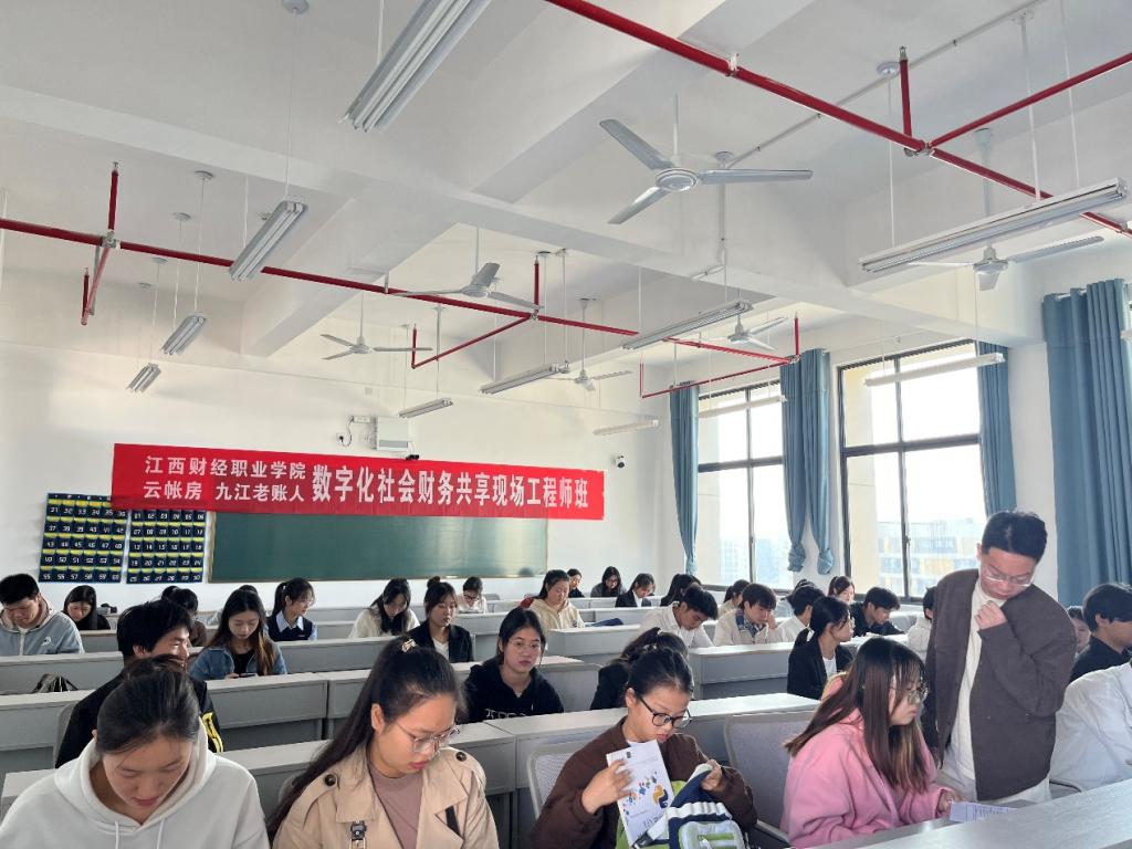 为继续深化产教融合,通过与行业优势企业开展校企合作,创新人才培养与就业新模式,搭建学生与企业之间的沟通桥梁,为学生打造就业创业好平台,2024年11月12日下午,会计学院联合云帐房网络科技有限公司、九江老账人财务公司举行第二期“数字化社会服务共享中心特训营”开班仪式。本次开班仪式于八里湖校区第一教学楼623教室举行,九江老账人财务咨询有限公司董事长刘勇、会计学院副院长齐洁及参与特训营培训的教师与2022级会计学院学生40余人参加了本次开班仪式。
