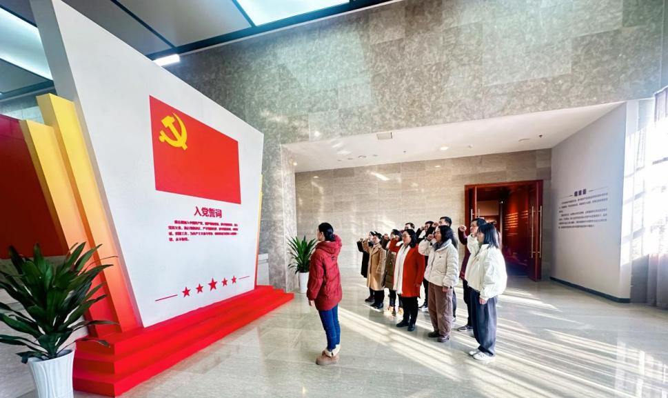 而后,全体党员在王莺同志的带领下,整齐列队,面向鲜红的党旗庄严宣誓。铿锵有力的誓言在活动现场回荡,声声誓言,句句承诺,强烈震撼着每一位党员的内心。这不仅是对入党初心的重温,更是对党员使命的再次承诺,提醒着全体党员时刻牢记自己的党员身份,要以实际行动践行入党誓词,为党的事业不懈奋斗,永葆政治本色。