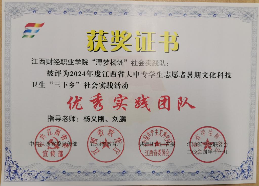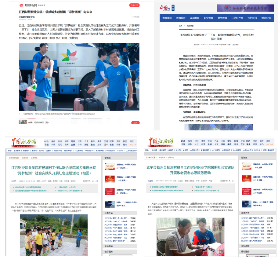 城乡建设学院“浔梦杨洲”社会实践队赴九江市武宁县杨洲村开展暑期“三下乡”社会实践活动。团队以专业技术深度参与乡村振兴建设,取得丰硕成果,获评江西省委宣传部、江西省教育厅等四部门联合颁发的“优秀实践团队”称号、调研报告特等奖等多项荣誉。