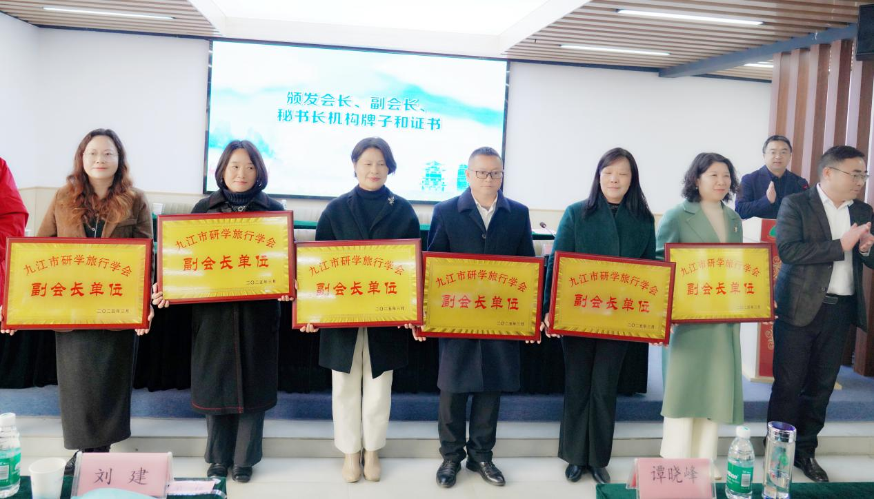 大会听取并审议通过了第一届理事会工作报告、第一届理事会财务工作报告和《九江市研学旅行学会章程》,选举产生了第二届理事会理事、理事会秘书长、学会会长、副会长、副会长单位、监事等,并现场进行了授牌。beat365平台唯一官网当选为副会长单位,文化旅游学院易娇艳当选研学旅行学会副会长,秦丹当选学会副秘书长,刘锋华当选学会监事。