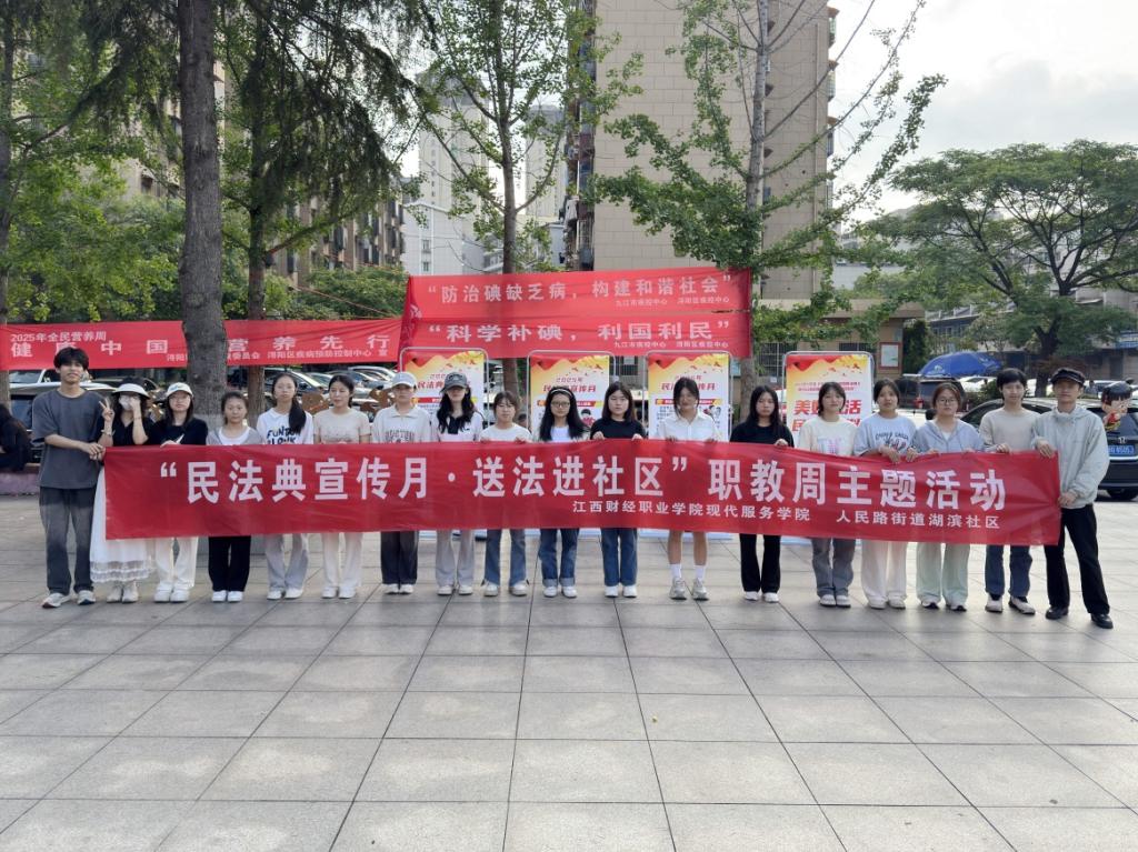 为普及中华人民共和国民法典知识,营造社区法治氛围,5月16日下午,现代服务学院与湖滨社区联合开展“民法典宣传月▪送法进社区”职教周主题宣传活动。现代服务学院(本科部)负责人姜启跃现场指导,法律事务专业师生积极参与。