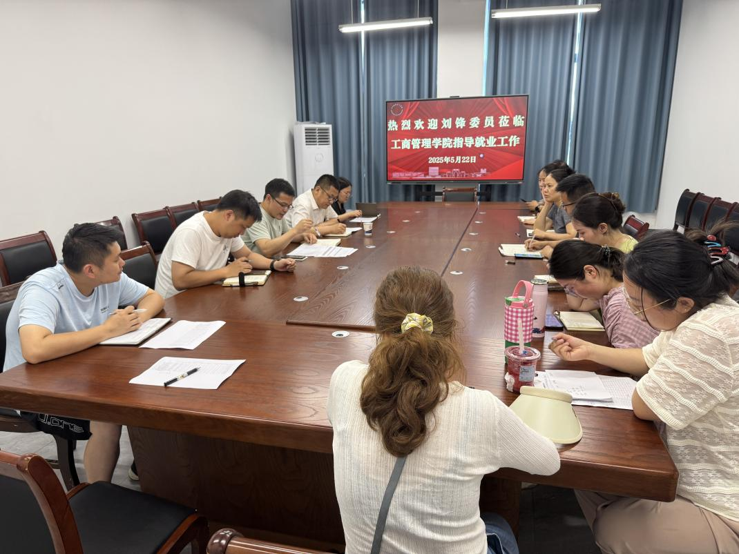 为加快推进毕业生高质量就业,5月22日,校党委委员刘锋深入工商管理学院调研指导毕业生就业工作。院党政班子成员、就业干事及全体毕业班班主任参加调研座谈会。