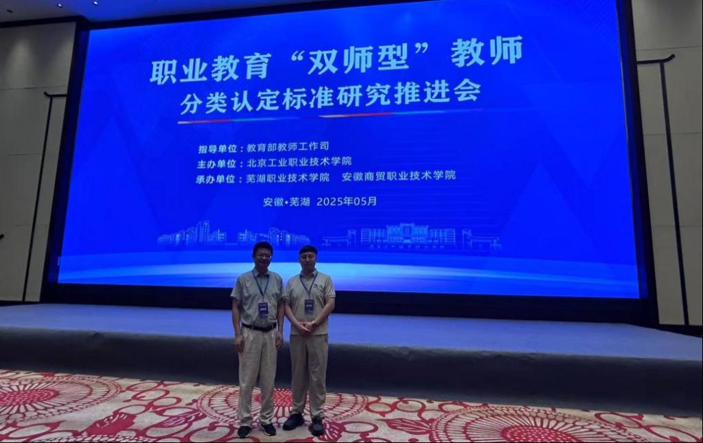 2025年5月25日至27日,由北京工业职业技术学院主办、芜湖职业技术学院和安徽商贸职业技术学院承办的“职业教育‘双师型’教师分类认定标准研究推进会”在安徽芜湖召开。beat365会计学院副院长谭玉林、党政办公室主任曾越受邀参会。