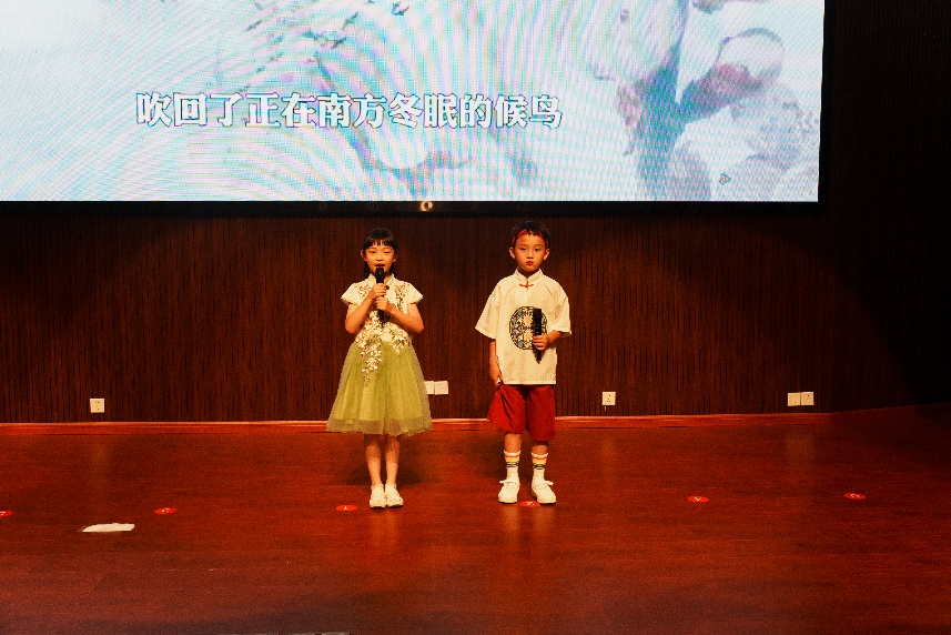 本次朗诵会还特别设置了“萌宝诗语”环节,特邀两位小朋友作为嘉宾,参与演出。小嘉宾们用充满童真朝气的声音传递了他们对诗歌的热爱,展现出新一代儿童对中华优秀传统文化的传承。