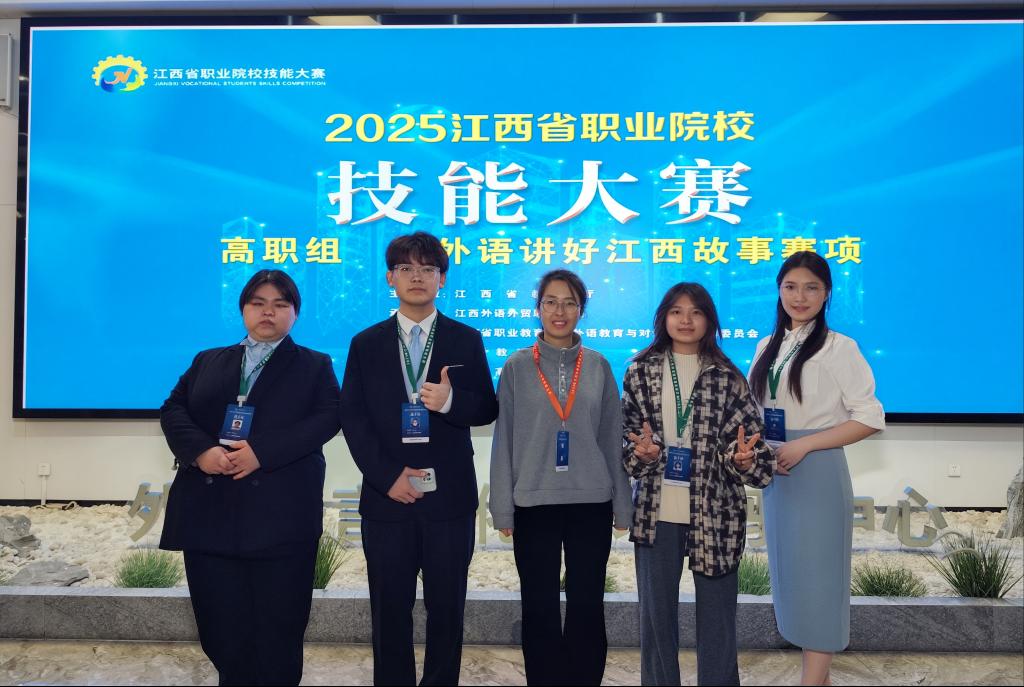 具体获奖情况如下:李伯乐、毕浩然、王馨悦、艾思琪同学在姜平、欧阳倍祥老师的悉心指导下,获“用英语讲好江西故事”赛项三等奖;潘静茹、李子泉、董莉丹、阿衣努尔古丽•艾克拜尔同学经杨蓓、欧阳倍祥老师的精心指导,夺得“新能源汽车国际营销”赛项二等奖;毕浩然、李伯乐、查承钰、黄涛同学于周艺涵、杨蓓老师的专业指导下,收获“英语口语”赛项三等奖。