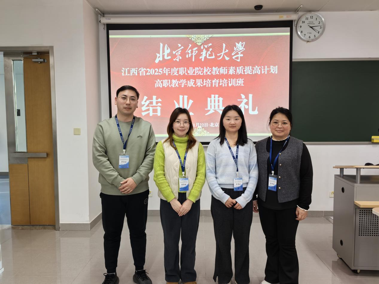为深入贯彻《深化新时代职业教育“双师型”教师队伍建设改革实施方案》等文件精神,切实提升高职院校教学成果培育能力,beat365平台唯一官网响应江西省2025年度职业院校教师素质提高计划工作部署,选派会计学院曾越、黄玲,数字经济学院张文悦,工商管理学院曹玉敏四位骨干教师,于2026年1月14日至23日赴北京师范大学,参加“高职院校教学成果培育(文科和综合类)培训班”。