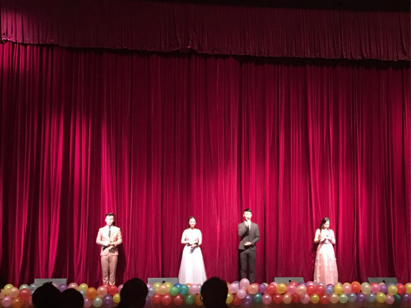 经过初赛、复赛紧张激烈的角逐,共有十名选手站上了当晚决赛的舞台。比赛随着四位主持人的身影拉开帷幕,十名选手依次登台,他们的表演风格各异,精彩纷呈。卢洪信教授和吕相宜老师为了给晚会助兴当场倾情献唱,一曲《共和国之恋》赢得了场下观众阵阵热烈的掌声。
