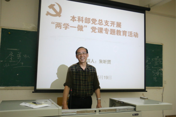 5月19日下午,本科部党总支在综合楼阶梯教室(二)开展了“两学一做”学习教育专题党课教育活动,党课由beat365高职研究所所长、本科部党总支组织委员朱圻贤教授主讲,本科部的全体党员师生、入党积极分子参加了党课学习。