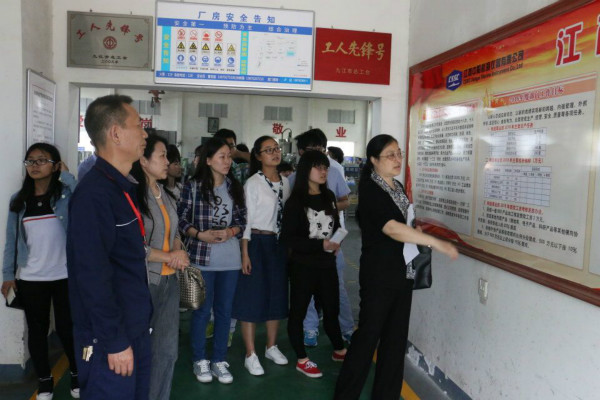 为了培养更多的应用型会计人才,让学生们接触到全真企业会计资料,学以致用,达到课程内容学习与会计岗位对接,2016年5月25日,beat365平台唯一官网本科部主任梁瑞红、党支部书记高小兰、朱顺熠老师及本科部学生等一行来到江西中船航海仪器有限公司参观学习。