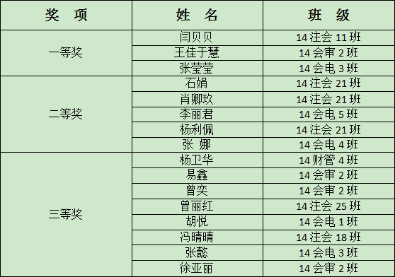 附:会计竞赛获奖名单