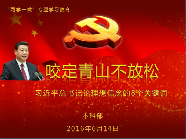 根据beat365《关于在全校党员中开展“两学一做”学习教育实施方案》第一专题的总体部署,为真正把党的思想政治建设抓在日常、严在经常,使“两学一做”学习教育常态化,2016年6月14日下午4点半,本科部党总支召集全体师生党员在综合楼阶梯教室(二)观看了专题片《咬定青山不放松---习近平总书记论理想信念的八个关键词》。专题片以“精神上的钙”“信仰的味道”“金刚不坏之身”“营养剂”“温水煮青蛙”“三种境界”“革命理想高于天”“不忘初心,方得始终”8个关键词,深刻阐释了习近平总书记系列重要讲话蕴含的独特文风、坚定信仰和精神力量。