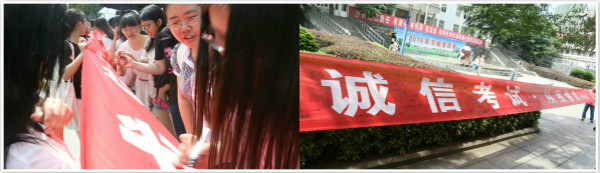 本次活动分以下三个环节进行:首先,由学生党员代表向全体同学宣读《全日制普通本科学生考试违纪处理规定》;接着,学生党员带领全体同学进行诚信考试庄严宣誓,最后,全体同学在“诚信考试·从我做起”横幅上签名。一个个签名代表一个个诚信承诺,代表莘莘学子诚信为本,维护尊严,塑造形象,守住内心的坚持,交出满意答卷的信心。
