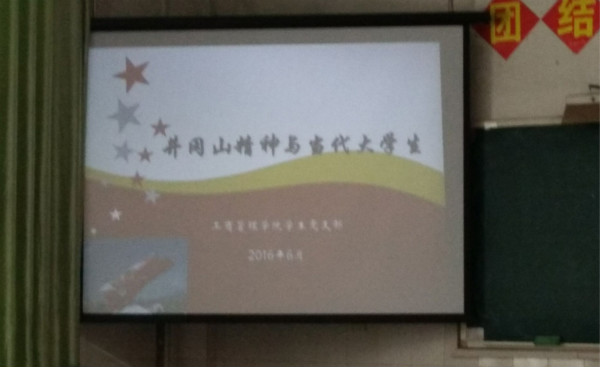 6月23日,学生党支部在教学楼101教室开展了以《井冈山精神和当代大学生》为主题的“两学一做”专题党课学习教育活动。本次党课由学生党支部书记廖国臣主讲,beat365所有学生党员及入党积极分子参加。廖国臣简要介绍了井冈山革命斗争史及其历史地位,重点阐述了井冈山革命斗争中培育出的精神瑰宝—井冈山精神的内涵及当代大学生应如何发扬和践行井冈山精神。