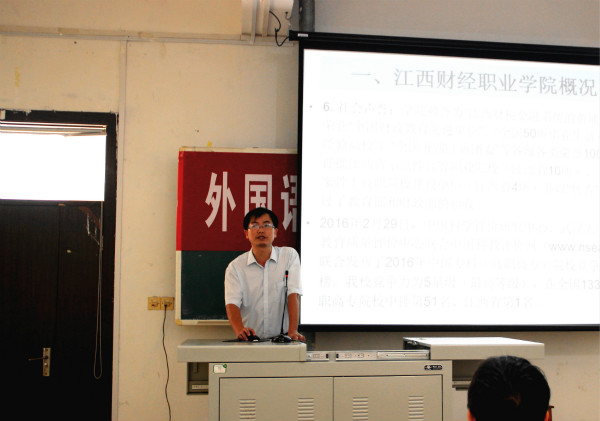 9月5日上午,外国语学院在综合楼阶梯教室(一)举行2016级新生开学典礼。外国语学院院长王胜华、党总支书记何平滚、党政办公室主任欧阳倍祥、商务英语教研室主任李辉及新生班主任业方琼和叶吟桐参加典礼。典礼由欧阳倍祥主持。