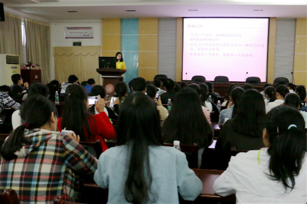首先图书馆罗剑丽老师从认识图书馆、如何利用图书馆以及高校图书馆联盟三维角度鼓励同学们大学期间好好利用图书馆资源;网络信息管理中心万维老师介绍了江西财大信息门户网、学分制教务系统和财大一卡通等网络资源和工具的使用方法和流程;教务处信息科科长吴洁老师依江西财经大学学分管理制度要求说明了合作本科班毕业资格和学位资格的有关事项。
