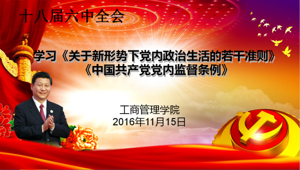 为将学习十八届六中全会精神与“两学一做”学习教育相结合,充分发挥党内政治生活对党员的教育与管理作用,11月15日下午,工商管理学院教工党支部在综合楼903办公室召开了以十八届六中全会精神为主题的集中学习会。会议由工商管理学院党总支书记胡红霞同志主持。