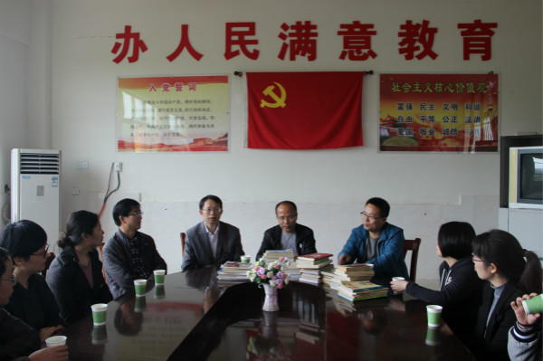 党员们一下车,就受到庐山市华林中学领导的热烈欢迎。在该校会议室双方进行了座谈,相互介绍了各自基本情况。党员们向该校捐赠了英语、中文、时政等人文社科图书、杂志。并表示今后会继续加强联系,尽力在外语师资培训方面为该校提供支持。双方还就中学英语教育教学改革进行了交流探讨,气氛活跃。
