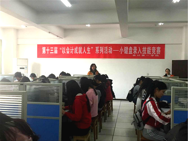 为进一步落实“四具备”人才培养目标,提升同学们的学习兴趣和实际动手操作能力, 2017年4月12日,会计第一学院在综合楼506、507机房开展了第十三届“以会计成就人生”系列竞赛活动——小键盘录入技能竞赛,来自beat36515、16级会计专业的200余名学生参加了此次竞赛活动。