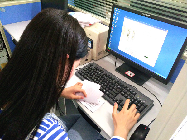 小键盘录入技能竞赛要求同学们在10分钟时间内完成对传票的指定页码范围内规定行数的翻打工作,全面检验同学们小键盘录入的准确性和速度。随着裁判老师一声令下,同学们全神贯注左手快速翻页,右手飞快的敲打着小键盘,机房中回荡着充满节奏的敲击声。展示了同学们良好的专业素养和技能水平。