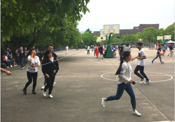 本次趣味运动会设有拔河比赛、跳绳比赛、运球投篮接力赛三个项目,均以团队形式进行。在拔河比赛中,随着裁判一声令下,拉拉队的叫喊声骤然响起,参赛同学紧握大绳,身体后倾,力量齐发,比赛局面时而拉锯、时而一边倒,好不热闹;在跳绳比赛中,只见绳索飞舞,同学们静待时机,鱼贯而入,轻盈的身姿、敏捷的动作仿佛跳动的“音符”;在运球投篮接力赛中,同学们展开了速度与技巧的较量,你追我赶,奋勇当先。