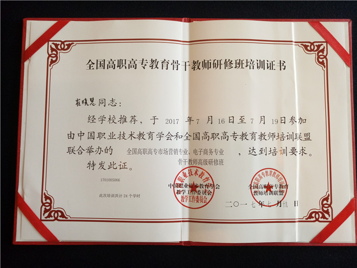 2017年度全国高职高专电子商务专业骨干教师高级研修班于2017年7月16日至19日在云南昆明开班。经济贸易学院派出党政办公室主任崔晓慧老师参加了此次研修班。