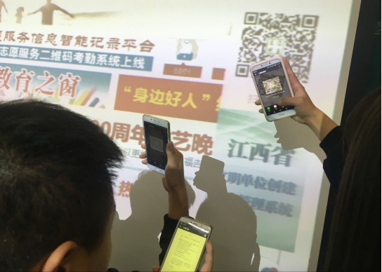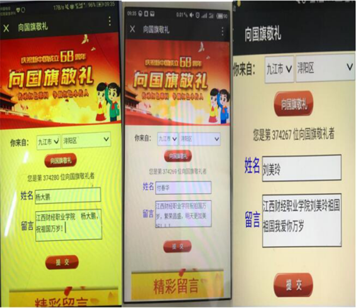 同学们纷纷登录江西文明网,扫描二维码,网上留言签名来表达了对祖国68岁的美好祝福,热情抒发了对祖国的热爱,并表达了对伟大祖国繁荣昌盛、和谐富强的衷心祝愿。