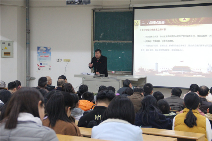 党总支书记谭国云作了题为《新时代党的建设总要求和八项重点任务》的专题学习讲座。讲座围绕学习宣传贯彻十九大精神政治任务,就如何理解与实现新时代党的建设总要求,坚持和加强党的全面领导,坚持党要管党、全面从严治党,不断提高党的执政能力和领导水平等方面内容进行了系统的阐述,逐层讲解了党的建设的主题、主线、统领、根基、着力点、党的建设六大方面和目标等七个方面内容,详细讲解了八项重点任务,着重强调把党的政治建设摆在首位,用习近平新时代中国特色社会主义思想武装全党。实现伟大梦想,必须推进伟大斗争,必须建设伟大工程,必须推进伟大事业,其中起决定作用的是党的建设新的伟大工程。
