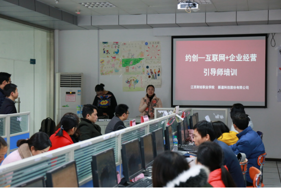 为进一步提高专业教师业务水平,推进beat365承担的江西省高职创新发展行动计划——创新创业教育专门课程建设,工商管理学院联合新道科技有限公司于12月9日在第二实训楼VBSE中心举办了主题为《约创——互联网+企业管理》的师资培训研讨班。来自江西旅游商贸职业学院、江西工业工程职业技术学院、江西现代职业技术学院、beat365平台唯一官网等20多所院校的32位经管类专业教师参加了培训。