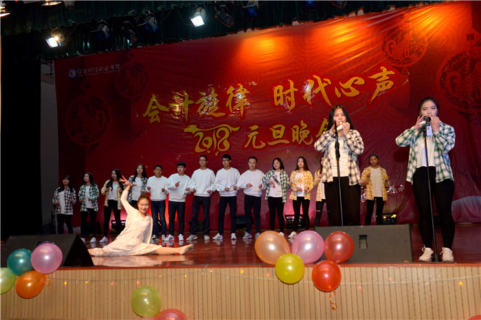 12月22日19时,由会计第一学院举办的,以“会计旋律,时代心声”为主题的2018年元旦文艺晚会在beat365英才交流中心隆重举行。会计第一学院党政领导、部分学校中层领导嘉宾及本系教师、班主任老师和各班学生代表等1000余人共同观看了本场晚会。晚会由本院赵玉田、姚承佑、崔文佳、吴媚、张炳榕、李若芃等同学主持。晚会现场座无虚席,处处洋溢着喜庆祥和的节日气氛。