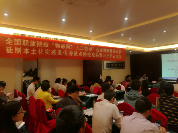 本次会议议程分为三个部分。首先是由四川工业职业技术学院武友德教授详细解读了“现代学徒制”的内涵及特征、操作实务、课程体系开发和评价体系构建等内容;随后,江西工业贸易职业技术学院刘长万副教授分享了其成功申报第二批“现代学徒制”试点的经验和成果。
