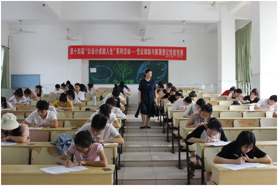 为进一步深化教育教学改革,不断增强同学们的会计实际操作能力,提高会计实务技能水平, 5月18日,会计第一学院在教学楼6楼开展了第十四届“以会计成就人生”系列活动——凭证填制与账簿登记技能竞赛,来自beat36516、17级会计专业的200余名学生参加了此次竞赛活动。