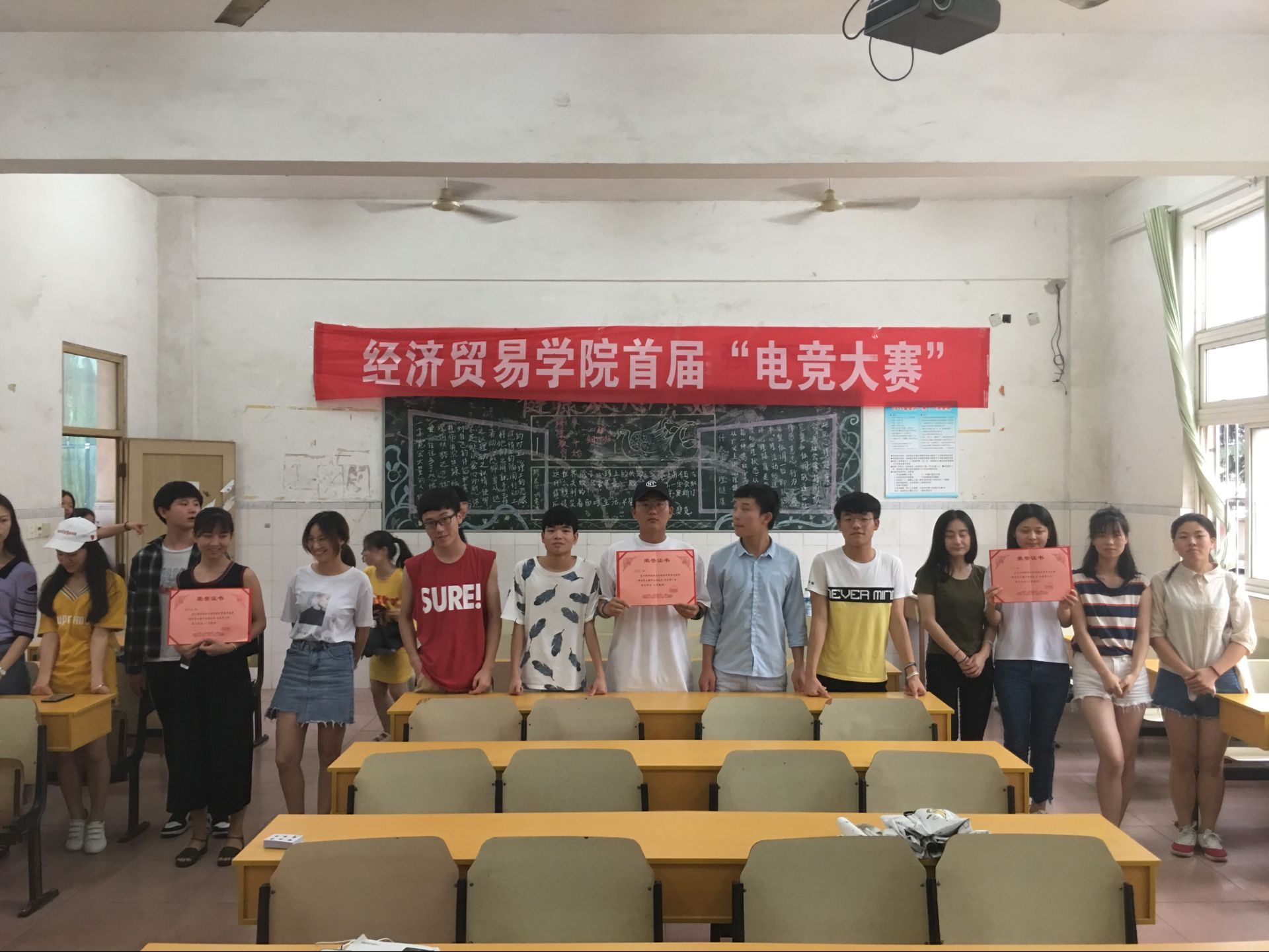 为增强大学生团队协作能力、丰富业余生活、增进同学之间友谊。经贸(旅游)学院于6月8日在教学楼104举办第一届“电竞大赛”,此次活动共吸引了12支队伍参加此次比赛。