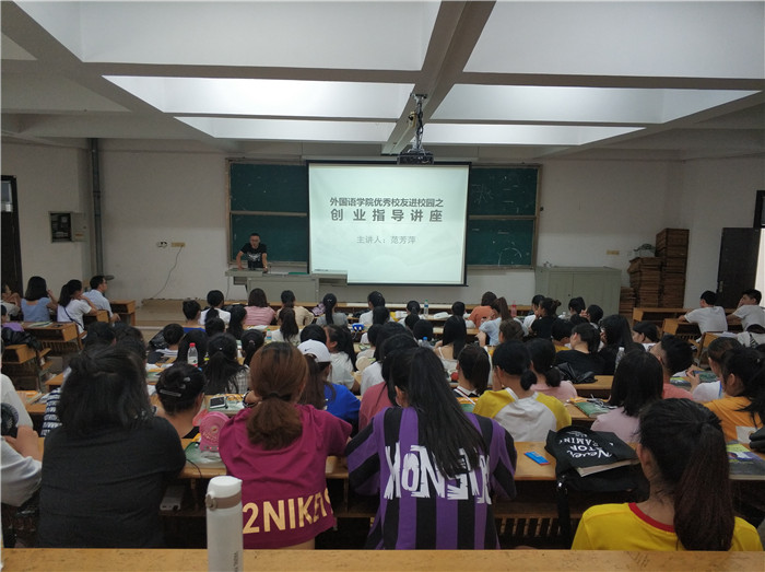 6月19日下午,经外国语学院邀请,优秀校友范芳萍百忙之中抽空来学校为2016级、2017级商务英语专业学生举办创业指导讲座。