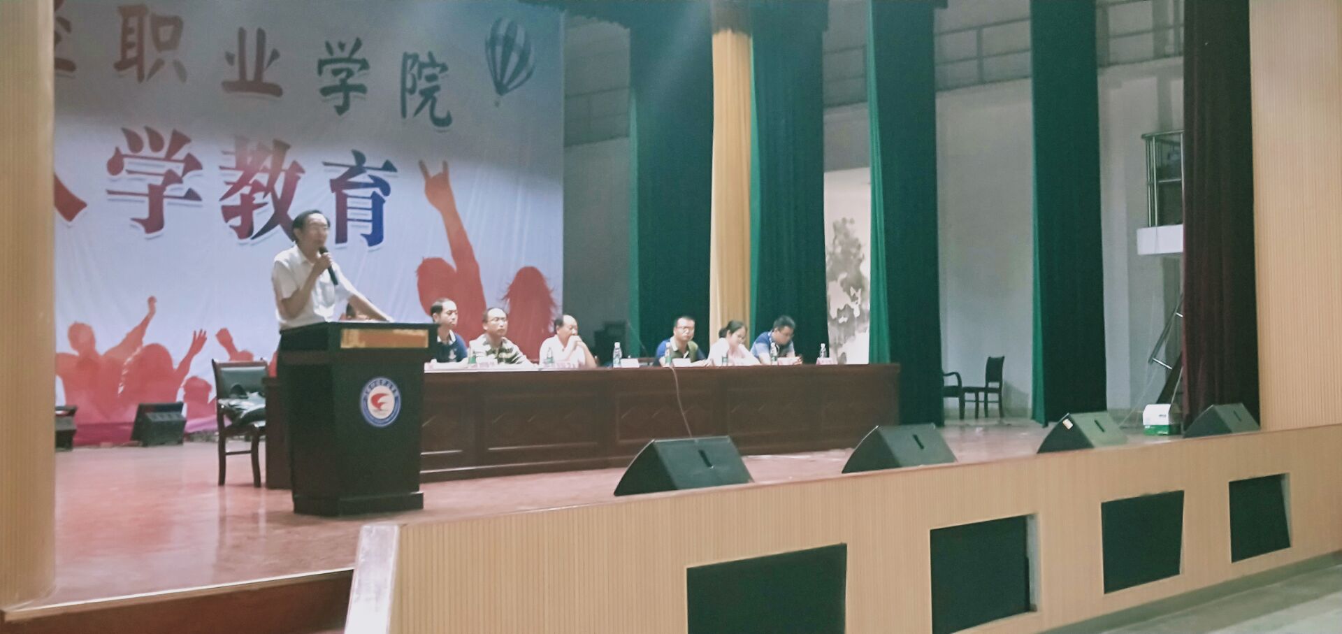 此外新教师代表李玮,老生代表学生会主席2016电子商务1班丁慧琴,新生代表2019级陈天水分别代表新教师、老生、新生发言。最后党总支但汉彪书记做总结讲话。