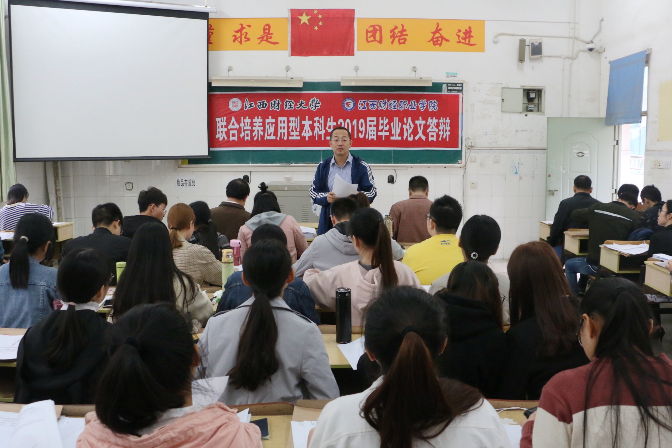 2015级毕业论文写作工作自2018年1月开始以来,本科部实时监控论文进度,建立好学生和指导老师的沟通桥梁,严格要求学生按照江西财大论文标准规范写作。最后进入毕业论文答辩阶段,与以往不同的是此次采用即问即答的模式,对同学们就自己论文的熟悉程度和专业能力提出了很高的要求。论文答辩中学生认真对待,简洁明确地回答了答辩老师就论文内容提出的各个相关问题。有些学生论文严谨的思路和认真的态度,得到了答辩老师的赞扬;但也有部分学生存在不熟悉论文内容、格式不规范等问题。另外2016级部分同学全程旁听,结束后纷纷表示受益匪浅,对将来的论文写作有很大帮助。